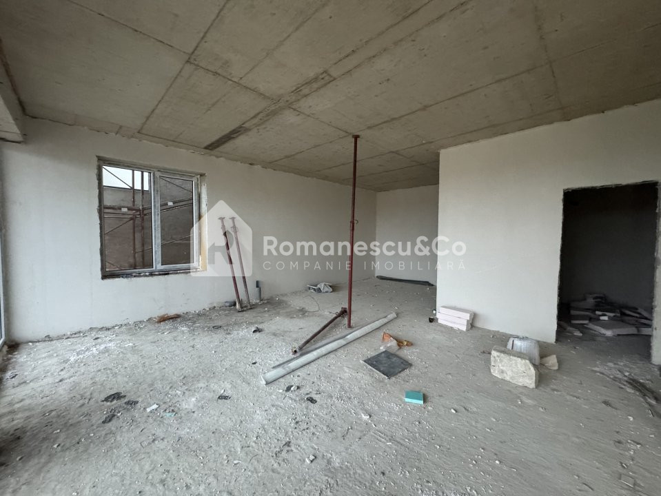 I nivel: bucătărie, living generos, bloc sanitar și ieșire directă în curte