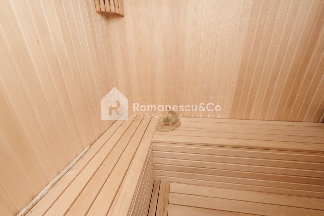 - Baie cu finisaje din marmură, cadă, accesorii aurii și saună finlandeză proprie