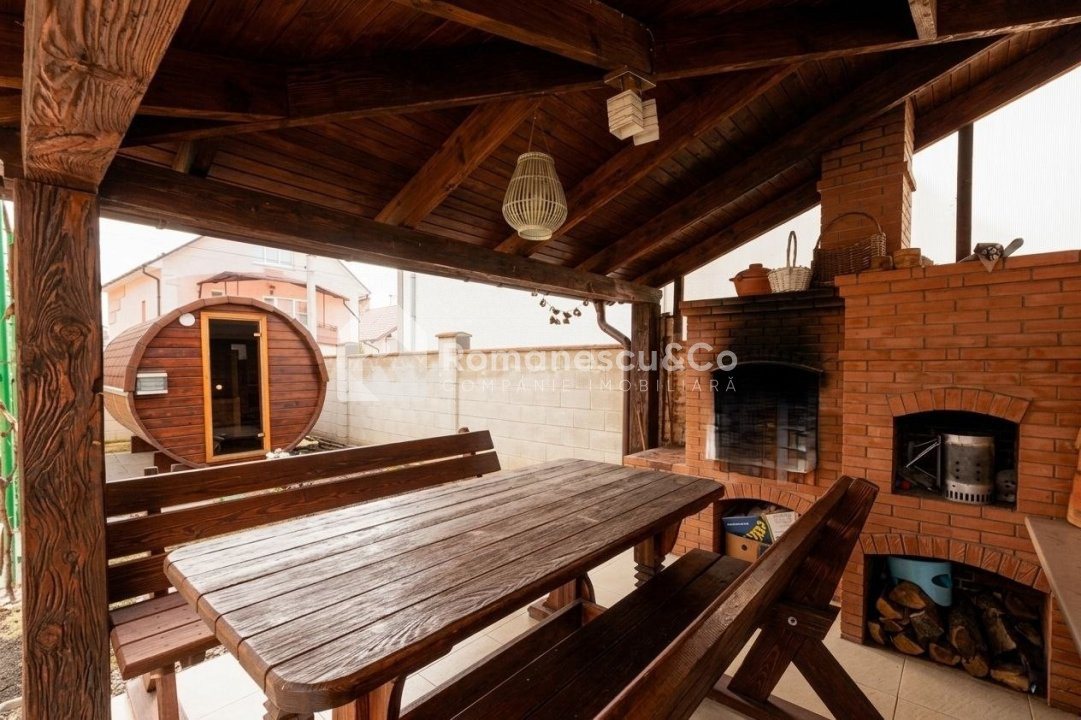 Relaxare: Saună proprie și foișor, ideale pentru momentele cu prietenii și familia.