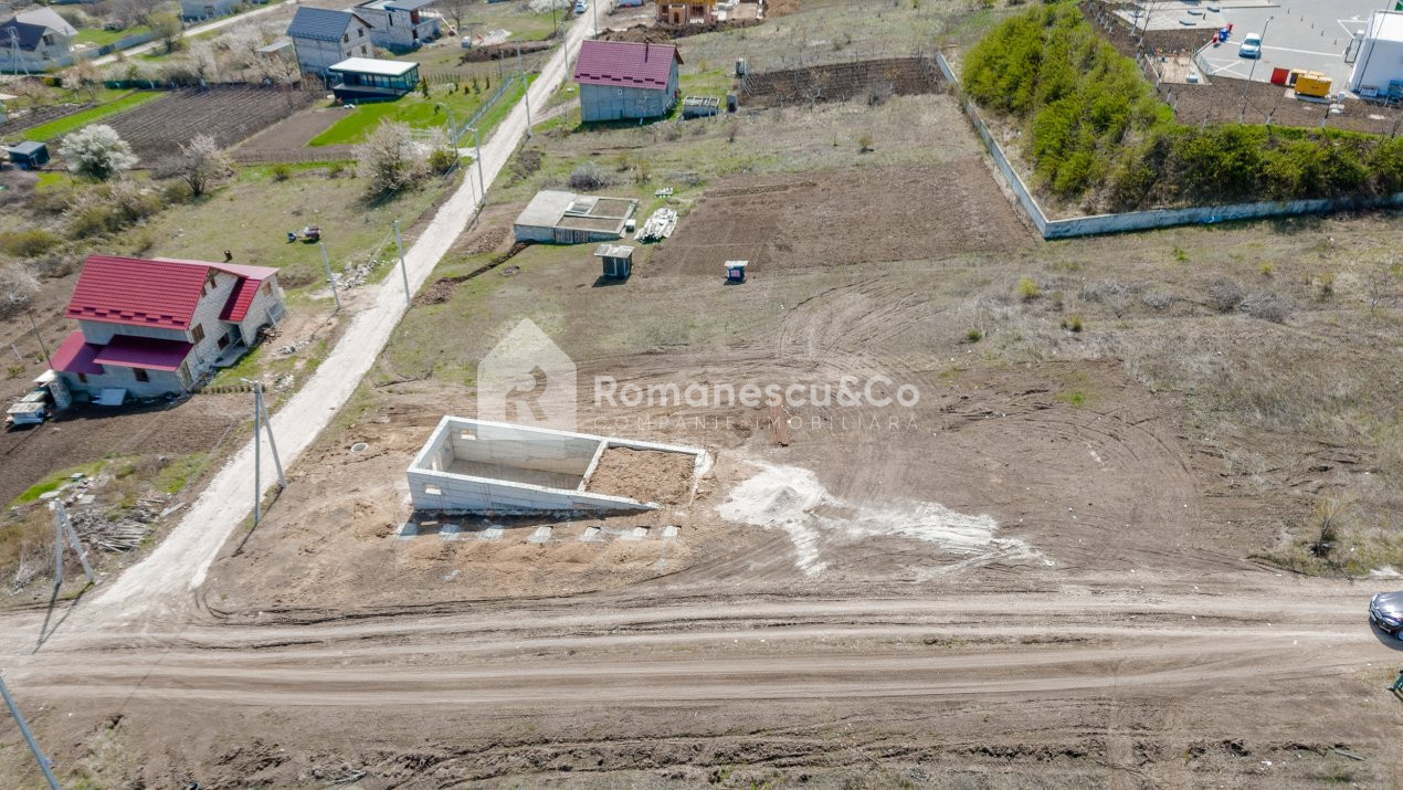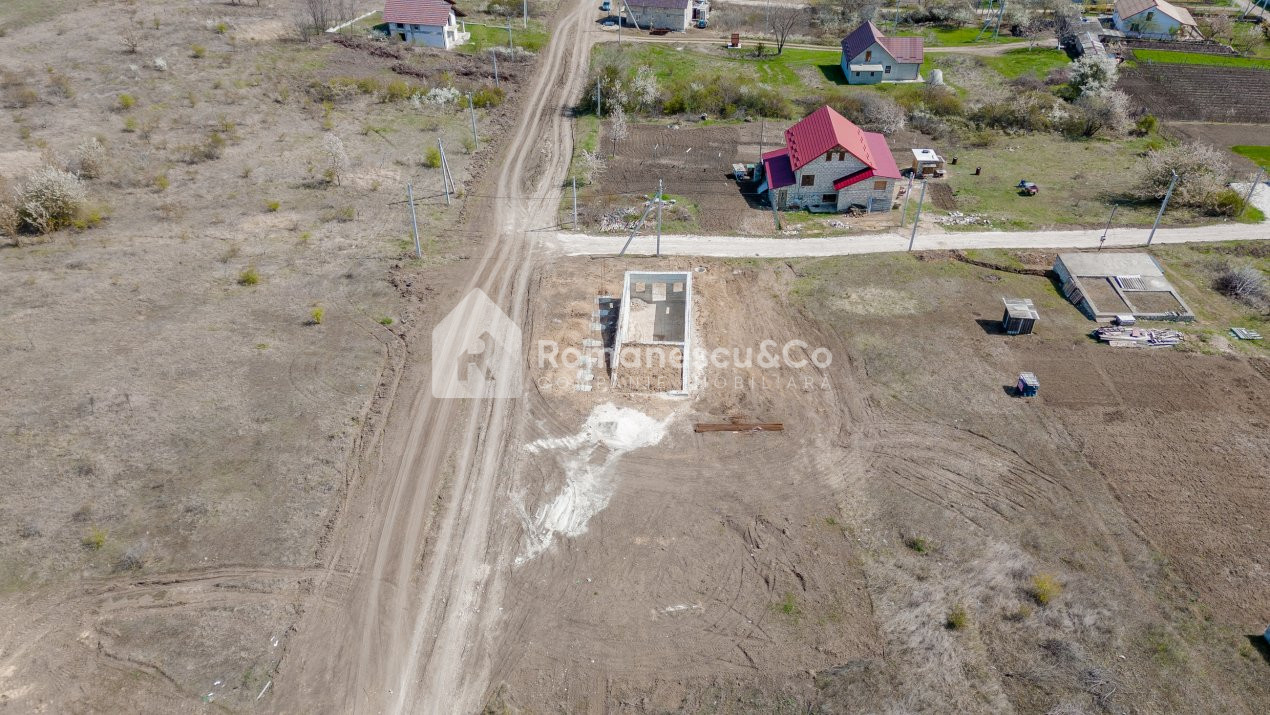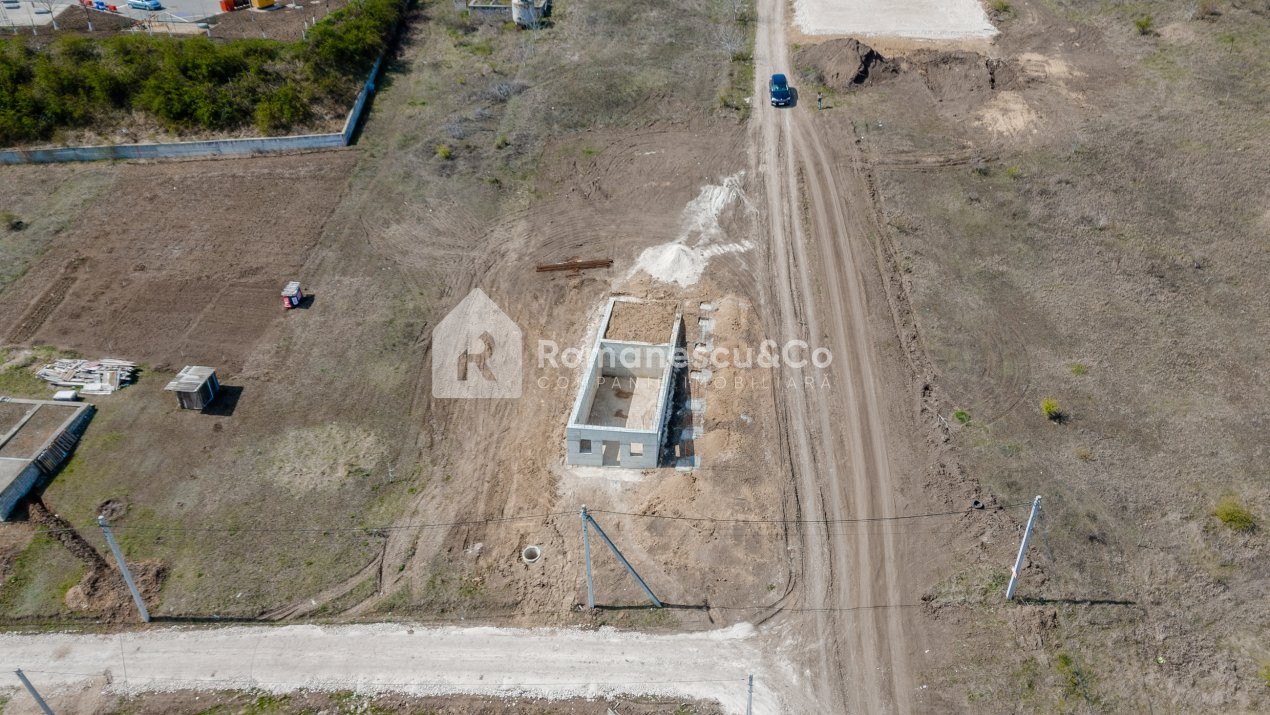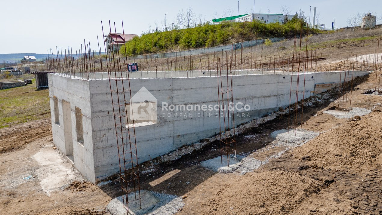 Pe teren este amplasată o construcție nefinisată, proiectată pentru a deveni o casă modernă în stil high-tech – o oportunitate excelentă de a-ți personaliza locuința după propriul gust și necesități, economisind timp și resurse în fazele inițiale ale construcției.
