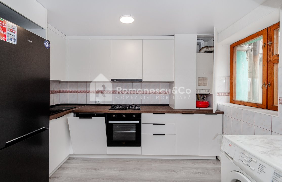 bucătărie dotată cu tehnică modernă, ideală pentru momente relaxante în familie;